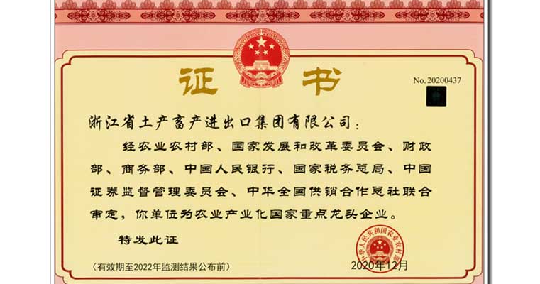 浙江土畜獲“2020年全國農業產業化龍頭企業100強”和“外貿出口10強”兩項榮譽