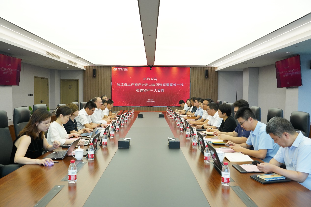 7月12日,為踐行省國貿集團“商貿轉型”戰略落實落地,探索公司體制機制創新,浙江土畜黨委書記、董事長張斌率隊赴物產中大云商進行對標交流,學習物產中大云商在體制機制改革方面的經驗,推動體制機制創新,實現公司轉型升級。物產中大云商黨委書記、董事長徐斌毅,黨委副書記、總經理陳燈紅,黨委副書記、工會主席萬凡及相關條線負責人熱情接待。國貿集團戰略與投資部副總經理江月紅,公司領導林軍、凌琦、葉位杰、魏濤濤及相關子公司、職能部門負責人參加本次對標交流。