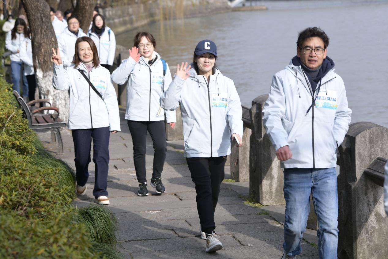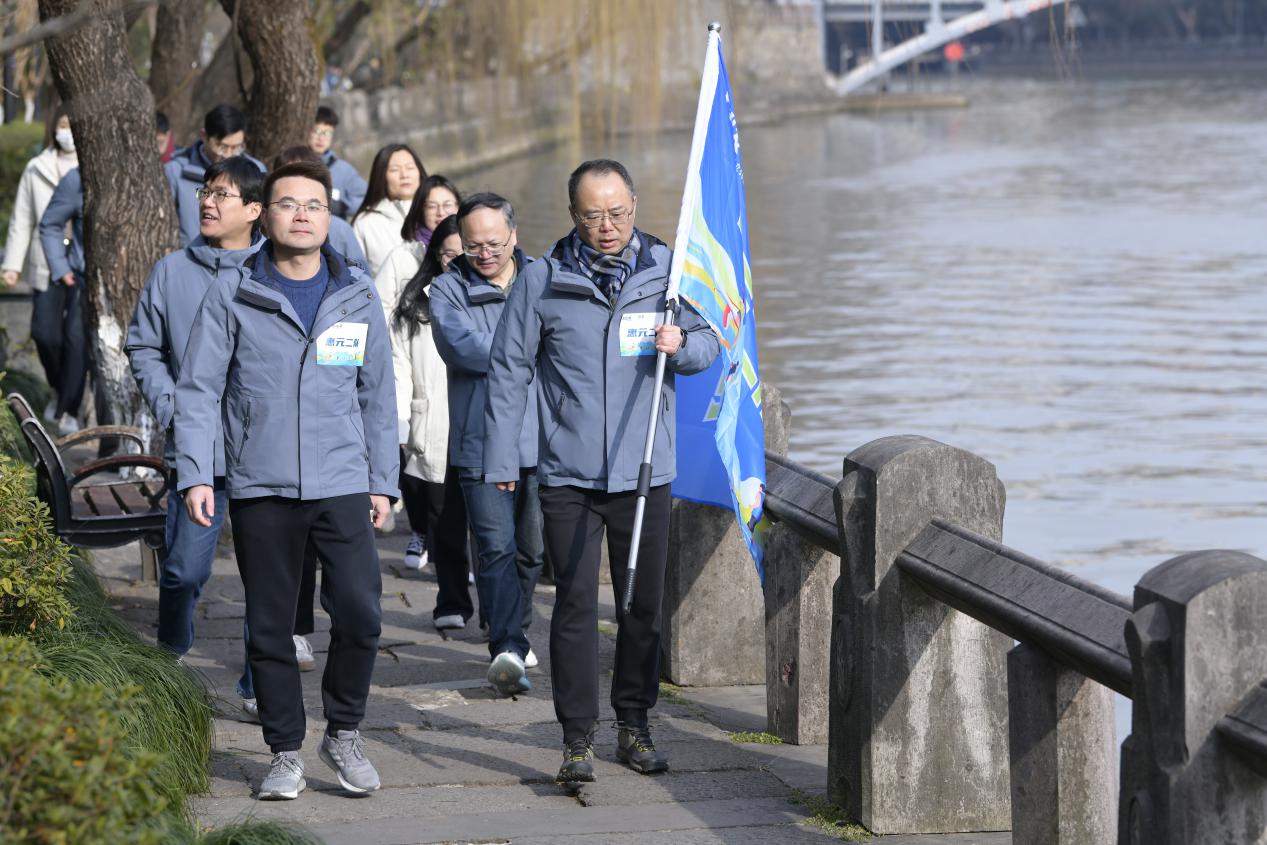 毅行活動開啟了浙江土畜接續(xù)奮斗的全新征程。當(dāng)日上午,陽光明媚,春和景明。隊(duì)員們精神飽滿、熱情高漲,以積極的狀態(tài)投入活動中。伴隨著“出發(fā)”的槍聲毅行活動正式啟動。大家斗志昂揚(yáng)、步履矯健,從浙江土畜舊址米市巷出發(fā),沿著京杭大運(yùn)河西岸一路向南進(jìn)發(fā),途徑公司第二個(gè)辦公舊址——浙江經(jīng)貿(mào)大樓,最終抵達(dá)公司現(xiàn)址中大廣場——浙江土畜總部所在地,全程超過4公里。