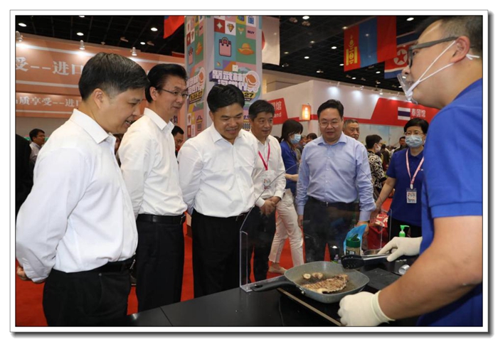 開幕日上午,浙江省商務(wù)廳黨組書記、廳長盛秋平,黨組副書記、副廳長、一級巡視員韓杰,下城區(qū)委書記劉穎在省國貿(mào)集團(tuán)黨委委員、副總經(jīng)理黃道領(lǐng),公司黨委書記、董事長張斌的陪同下,蒞臨公司展位,詳細(xì)了解公司銷售火爆的西班牙橄欖油、巴西牛肋排和捷克牛奶等產(chǎn)品。盛廳長指出,浙江土畜要堅(jiān)決扛起國企擔(dān)當(dāng),發(fā)揮進(jìn)出口專業(yè)優(yōu)勢、渠道優(yōu)勢、貨源優(yōu)勢,加強(qiáng)現(xiàn)場營銷宣傳,抓住我國對澳洲紅酒反傾銷契機(jī),推動(dòng)公司澳洲紅酒銷售,加快培育民生類進(jìn)口產(chǎn)品國內(nèi)市場,暢通國內(nèi)大循環(huán)。