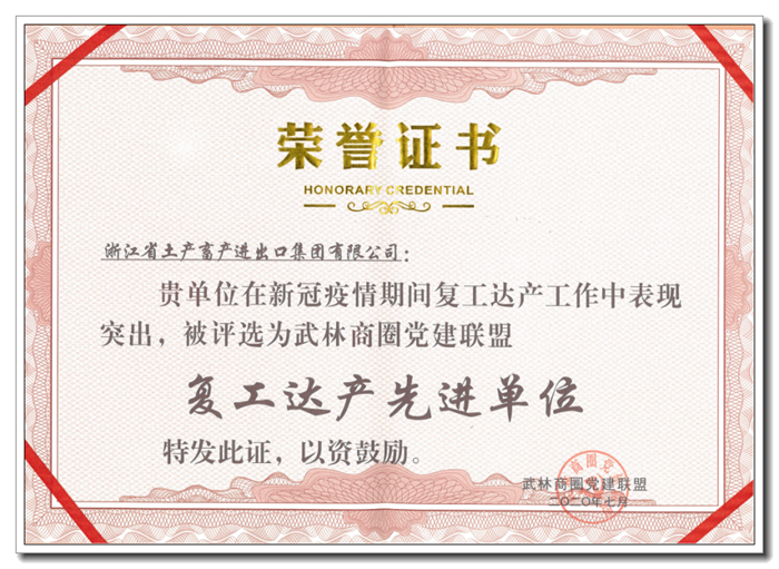7月15日晚,杭州市武林商圈黨建聯(lián)盟舉行2020年年會,來自聯(lián)盟各成員單位的300余名黨員參加活動。大會表彰了在疫情防控、復工達產(chǎn)、黨建共建方面的模范單位以及在疫情防控工作中表現(xiàn)突出的先進黨員,省土畜被授予“復工達產(chǎn)先進單位”稱號。浙江省商務廳黨組書記、廳長,聯(lián)盟輪值主席盛秋平,杭州市下城區(qū)委書記劉穎出席會議,并為獲得表彰的單位和個人頒發(fā)證書獎杯。