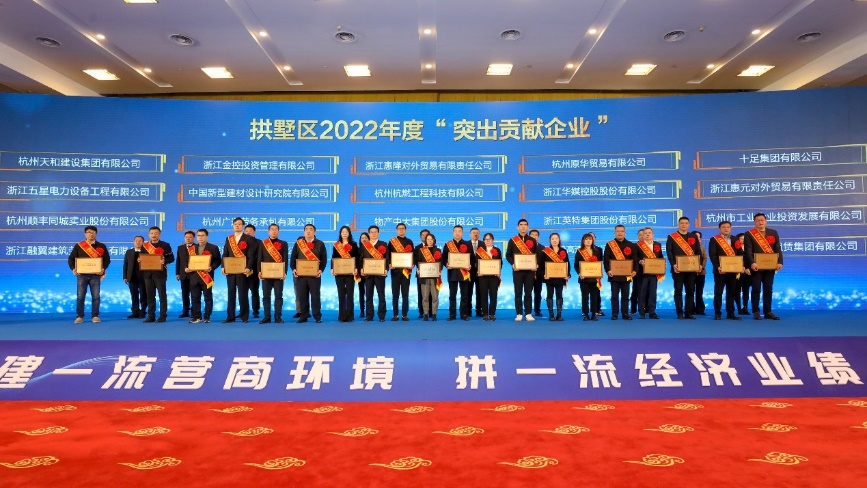會上,浙江惠隆對外貿易有限責任公司、浙江惠元對外貿易有限責任公司被授予拱墅區2022年度“突出貢獻企業”稱號。本次大會還發布了《拱墅區“雙百”企業禮遇十條》,聘任招商大使,部署了打造“時尚之都、數字新城、運河明珠”的戰略要求。