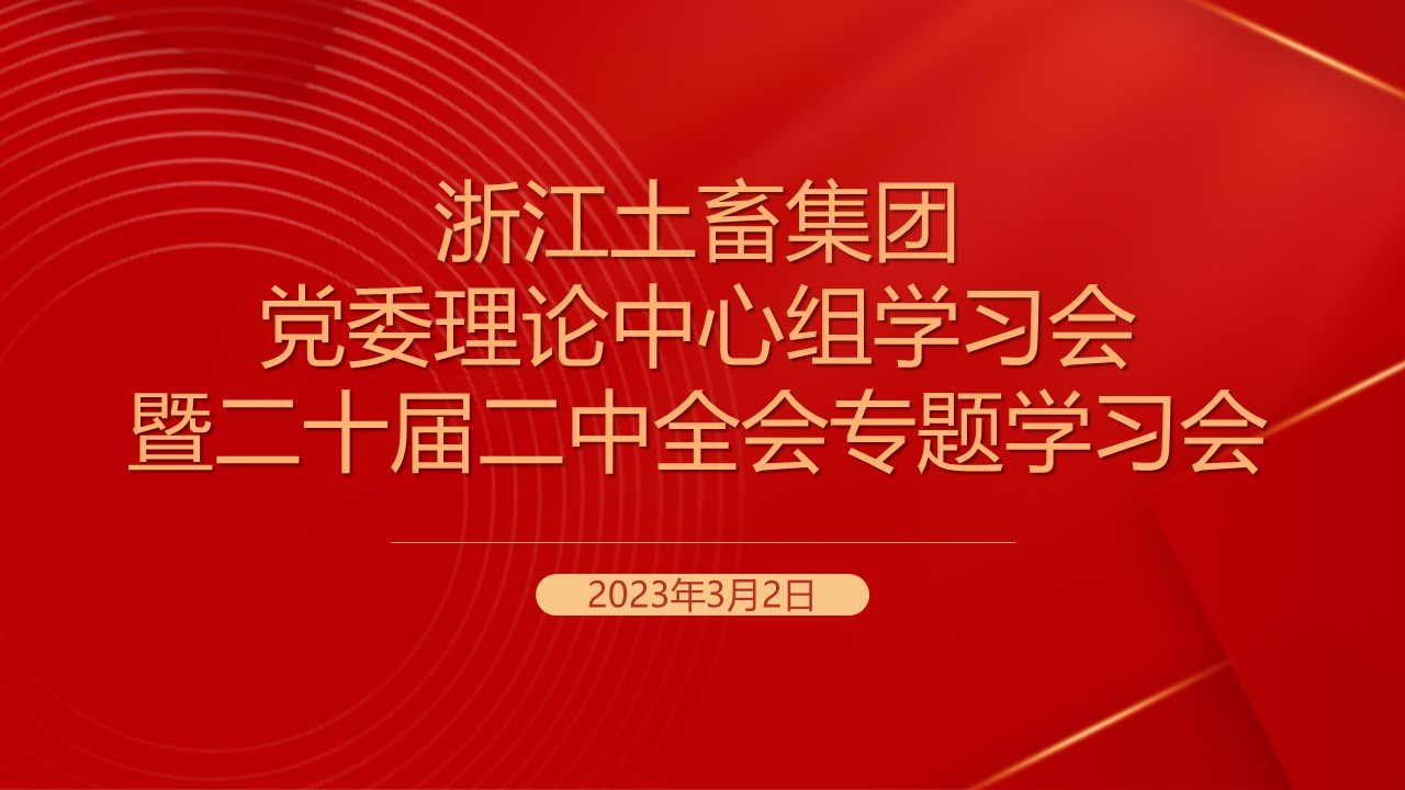 3月2日,浙江土畜黨委召開黨委理論中心組學習會,認真傳達學習黨的二十屆二中全會精神,緊密結合公司實際研究貫徹落實措施。公司黨委書記、董事長張斌主持會議并作中心發言,中心組成員立足分管領域分管工作作交流發言。
