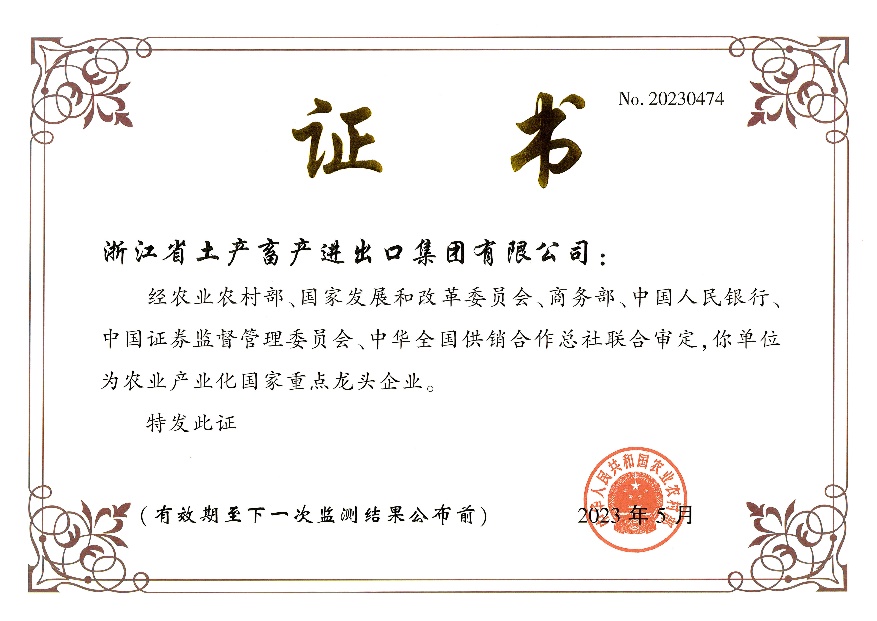 近期,經(jīng)農(nóng)業(yè)農(nóng)村部等八部委聯(lián)合審定,浙江土畜順利通過了第十次農(nóng)業(yè)產(chǎn)業(yè)化國家重點(diǎn)龍頭企業(yè)監(jiān)測(cè)。自2011年成為第五批國家重點(diǎn)龍頭企業(yè)以來,公司已連續(xù)六次通過國家部委監(jiān)測(cè)。