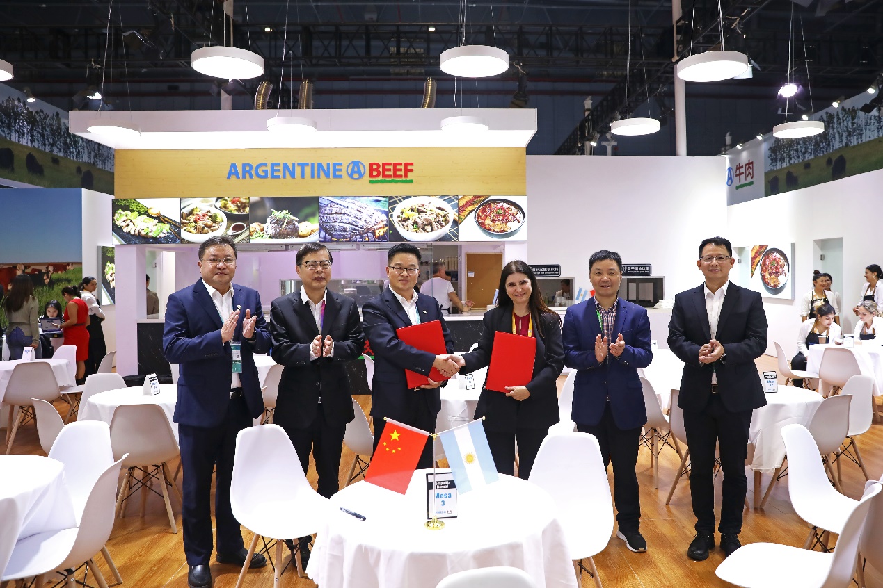 11月6日上午, 在省國(guó)貿(mào)集團(tuán)黨委書記、董事長(zhǎng)高秉學(xué),黨委委員、副總經(jīng)理張勇的先后見(jiàn)證下,浙江土畜分別參加浙江省交易團(tuán)進(jìn)口采購(gòu)集中簽約儀式和展館現(xiàn)場(chǎng)簽約,與西班牙Litera Meat, S.L.U.、阿根廷Compania Bernal S.A.公司簽下2500萬(wàn)美元豬肉進(jìn)口訂單和2500萬(wàn)美元牛肉進(jìn)口訂單,兩單合計(jì)5000萬(wàn)美元,較上屆進(jìn)博會(huì)增長(zhǎng)5%以上,為明年進(jìn)口肉類業(yè)務(wù)穩(wěn)定發(fā)展打下了堅(jiān)實(shí)基礎(chǔ)。